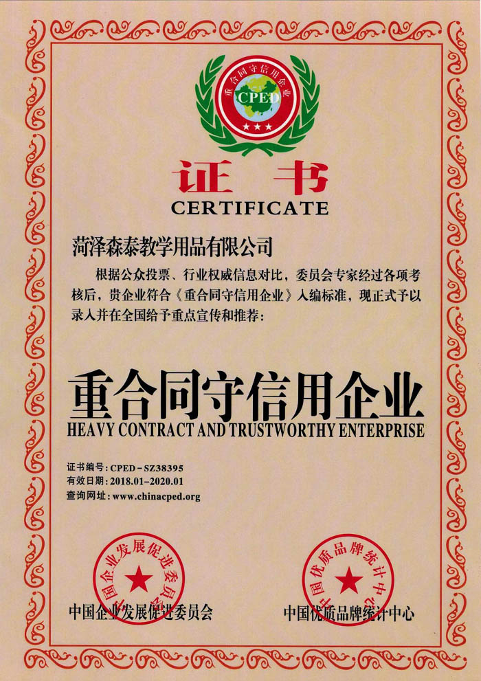 菏澤森泰教學用品有限公司地址位于中國牡丹之鄉山東-菏澤,公司成立于2008年,是菏澤市較早進入教學儀器生產、研發、倉儲、銷售為一體的專業化公司。主要生產銷售:小學數學、小學科學、初高中學物理、化學、生物、地理、數學實驗室成套儀器設備,小學勞技器材,音樂、體育、美術器材等。公司是中國AAA級重質量、重合同、守信用企業。